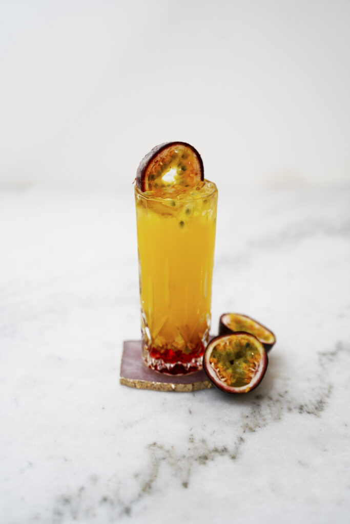 En eksotisk og frugtig drik med en forfriskende syrlighed og en flot, levende farve, der bringer tropiske vibes til enhver festlig lejlighed.